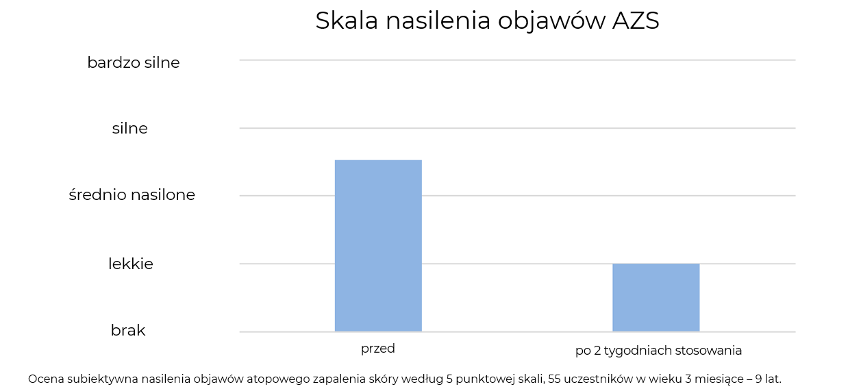 Minimalizuje objawy suchości skóry i AZS oraz ryzyko ich nawrotów