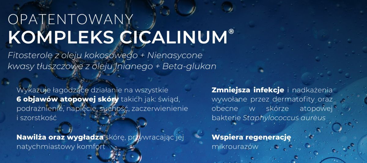 ✔ Cicalinum® – opatentowany kompleks omega 3, 6, 9 i β-glukanu, działa przeciwzapalnie i regenerująco