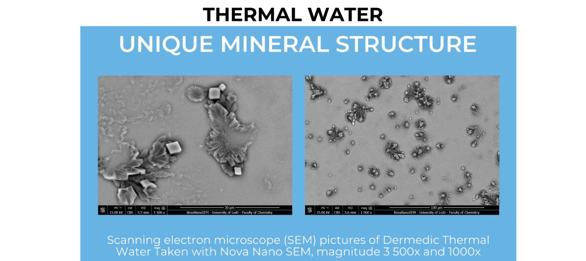 Swoją czystość mikrobiologiczną oraz wyjątkowo korzystny układ minerałów zawdzięcza 27 000 lat przenikania przez warstwy skał wodonośnych położonych na głębokości ponad 2100 metrów pod ziemią. Wydobywana jest systemem artezyjskim, w temperaturze od 50 do 75 stopni Celsjusza, dzięki czemu zachowuje idealną czystość mikrobiologiczną. Woda ta zawiera wyjątkowo korzystny układ minerałów, wspierający terapeutyczne działanie produktów DERMEDIC.
