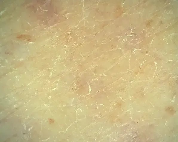 Instrumental study, female, 25 years old, lower leg area, KONG UV camera (BOMTECH Electronics Co., Ltd) at 80x magnification, evaluating the effect of the HYDRAIN Ultra-hydrating body butter on the condition of the skin subjected to the "tape stripping" procedure, aimed at partial removal of the stratum corneum.