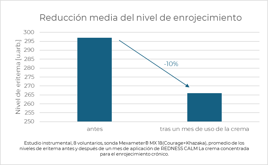 *Estudio de aplicación realizado con 15 voluntarios, evaluación mediante cuestionario tras una única aplicación de REDNESS CALM La crema concentrada para el enrojecimiento crónico.
