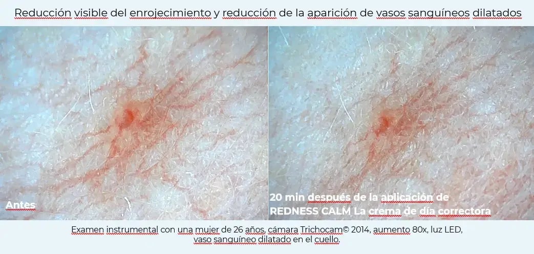 *Estudio de aplicación realizado con 20 voluntarios, evaluación mediante cuestionario tras una única aplicación de REDNESS CALM La crema de día correctora.