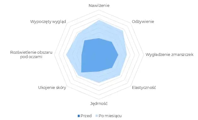 **Badanie aplikacyjne przeprowadzone z udziałem 9 uczestników, ocena ankietowa po miesiącu stosowania OILAGE Skoncentrowanego kremu przeciwzmarszczkowego pod oczy.