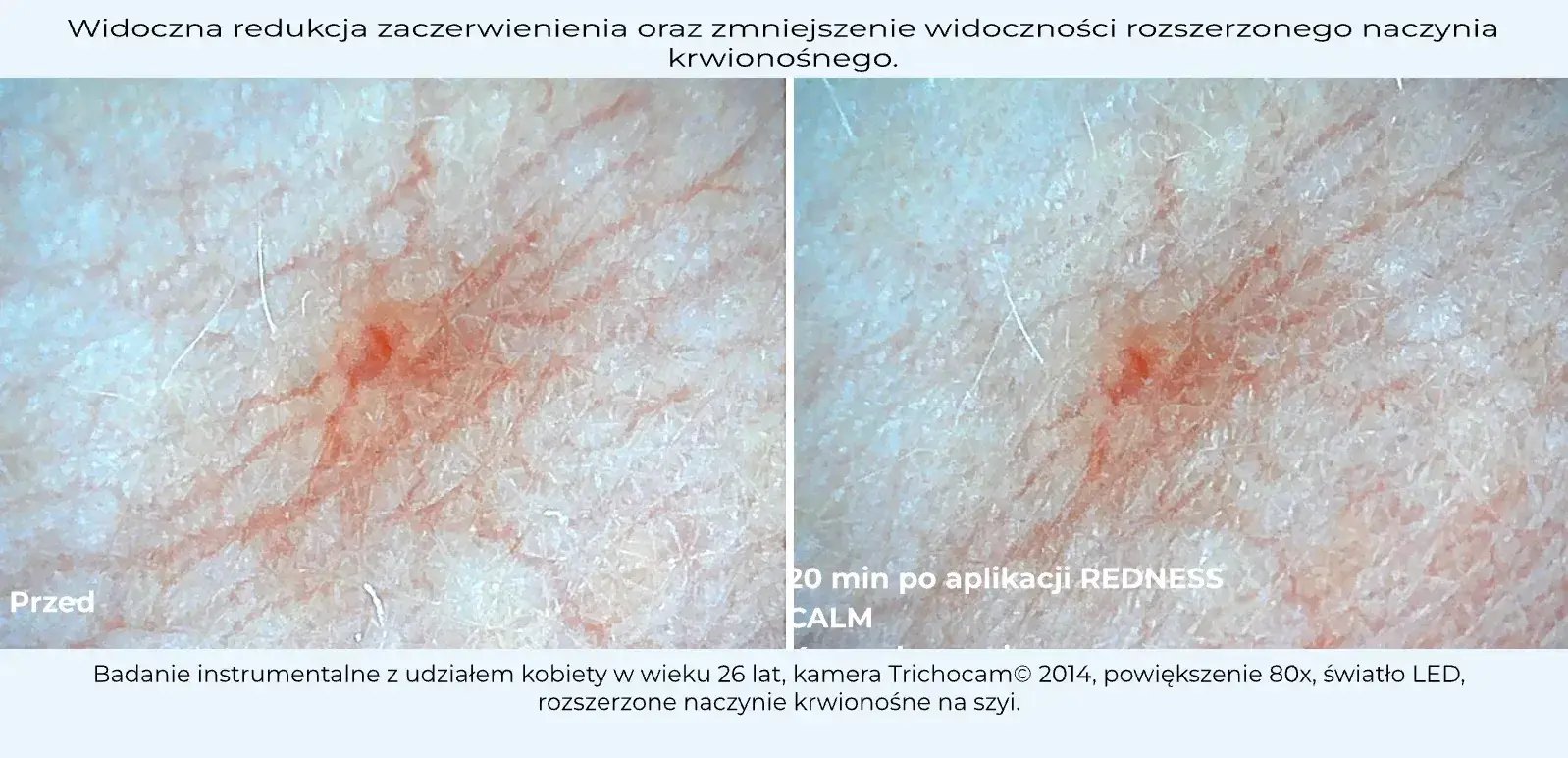 Zauważalnie zmniejsza widoczność rozszerzonych naczyń krwionośnych